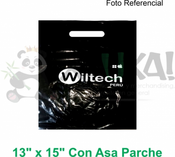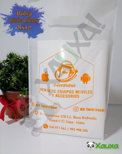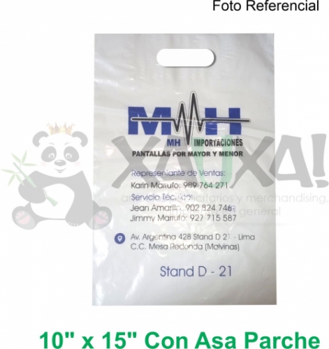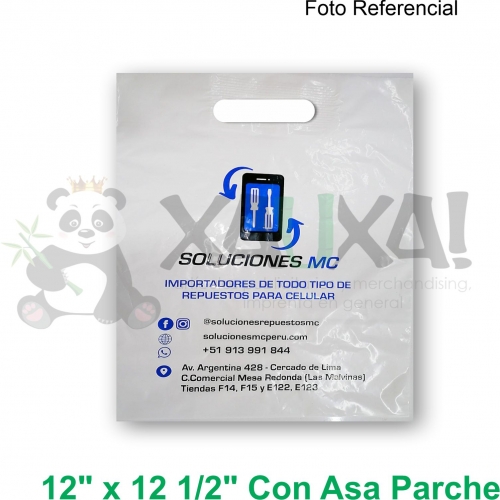 Bolsas plásticas baja densidad 12 x 17 inch. 43.1cm x 30.5cm con asa parche impresión 1 color