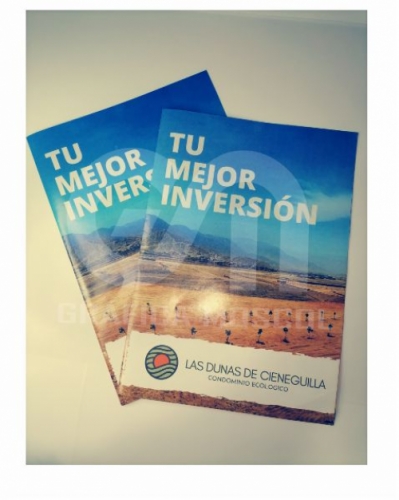 Papel couché 150 grms, impresión full color, A4 doblado en dos, cerrado A5